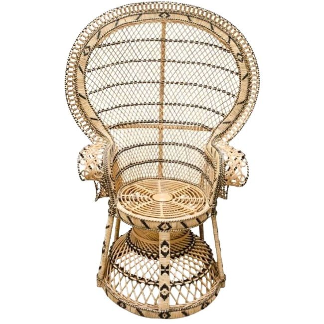 Handgemachter Luxus Sessel von Casa Padrino aus den 80er Jahren. Ein tolles Einzelstück für Trauzeremonie, Bühne oder Schaufenster. Der Pfauenthron - auch Peacock chair genannt - aus Rattan gefertigt ist perfekt geeignet für Boho- oder Shabby Designs.